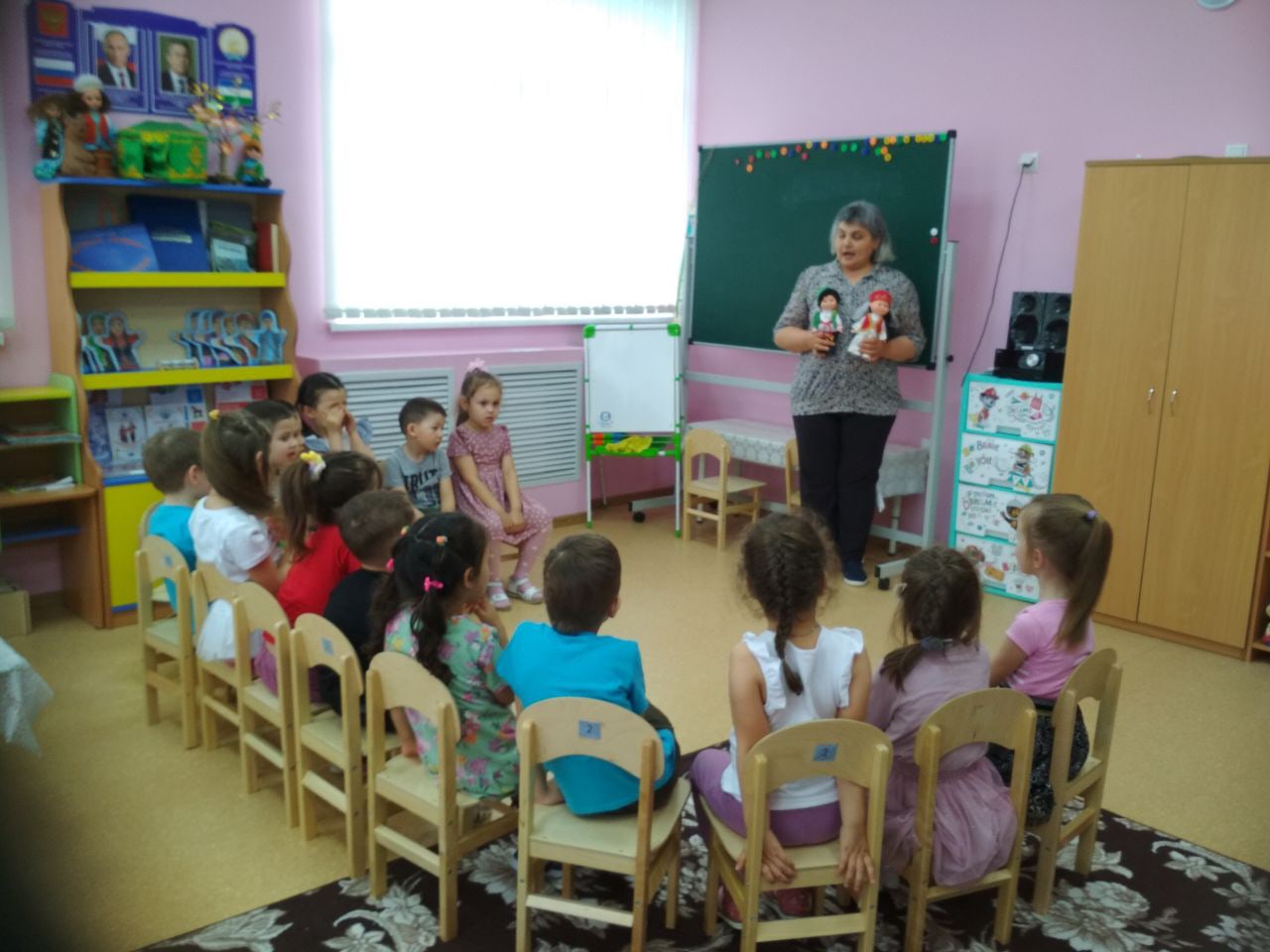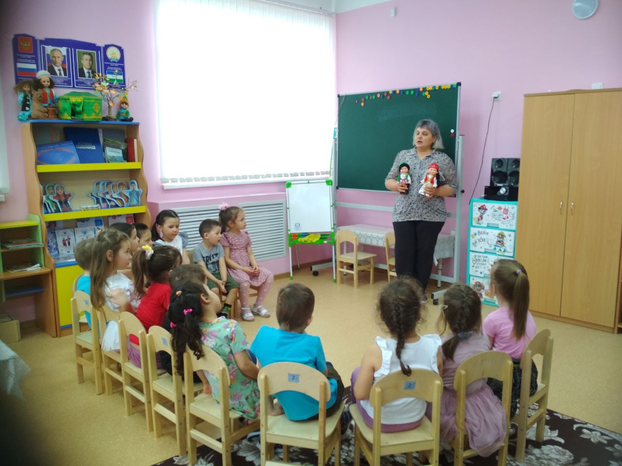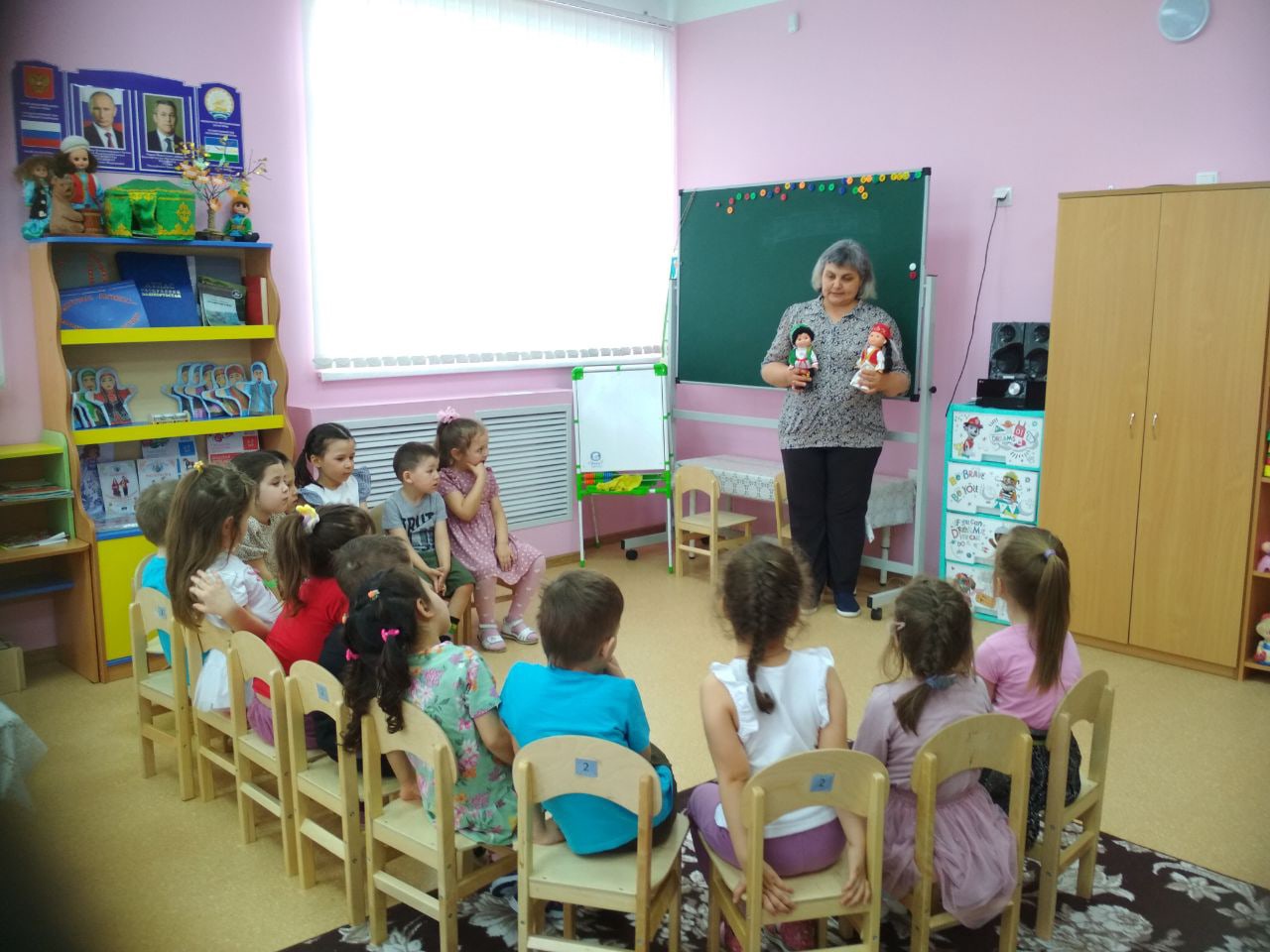 В рамках плана мероприятий, посвященных к году культурного наследия народов России в старшей группе «Солнышко» провели занятие «Прослушивание аудиосказок татарского народа» .