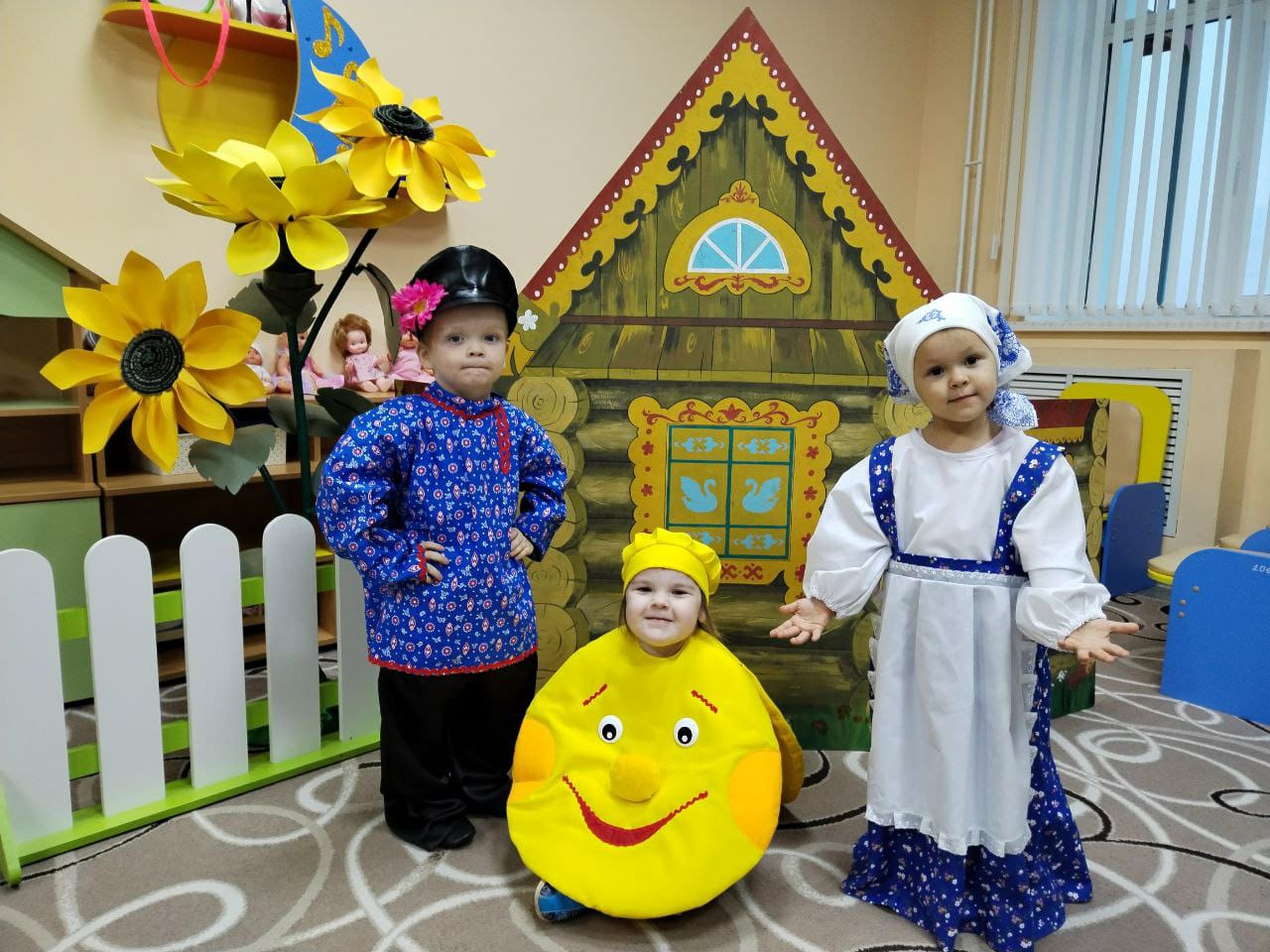 В рамках плана мероприятий, посвященных к году культурного наследия народов России в младшей группе «Звездочки» провели игру-драматизацию русской народной сказки "Колобок"