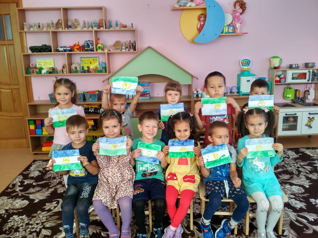 В старшей и подготовительной группе прошли тематические беседы на тему "Символика РБ посвященных дню Республики"