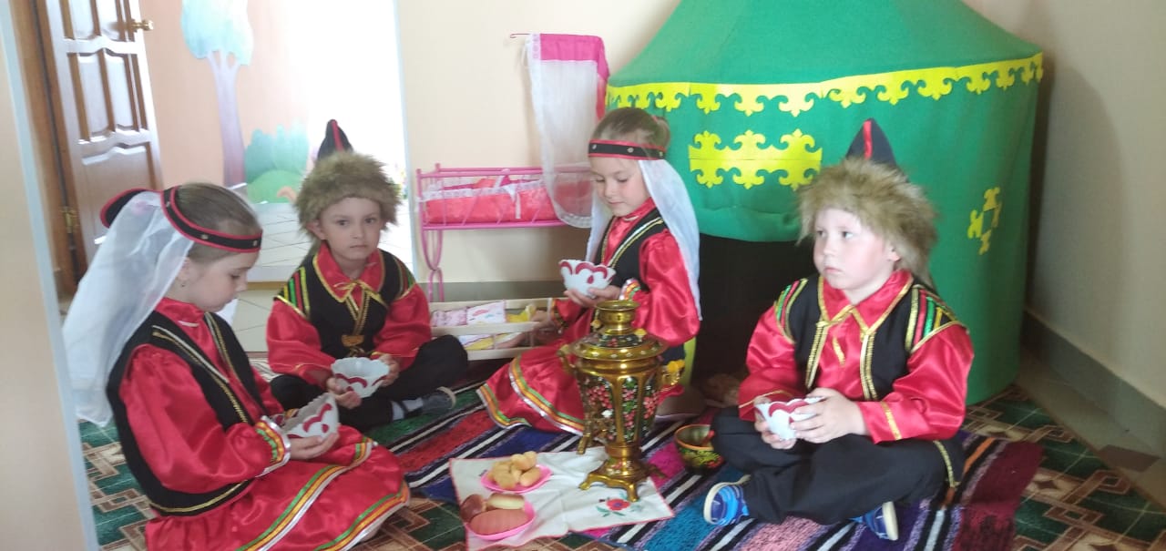 В МАДОУ "Детский сад №2 "Йэйгор" с.Бураево" по проекту «Педагогическая мастерская воспитателя ДОО «Остаз» воспитатель старшей группы Аллаярова Зиля Игмаловна провела занятие по башкирскому языку.