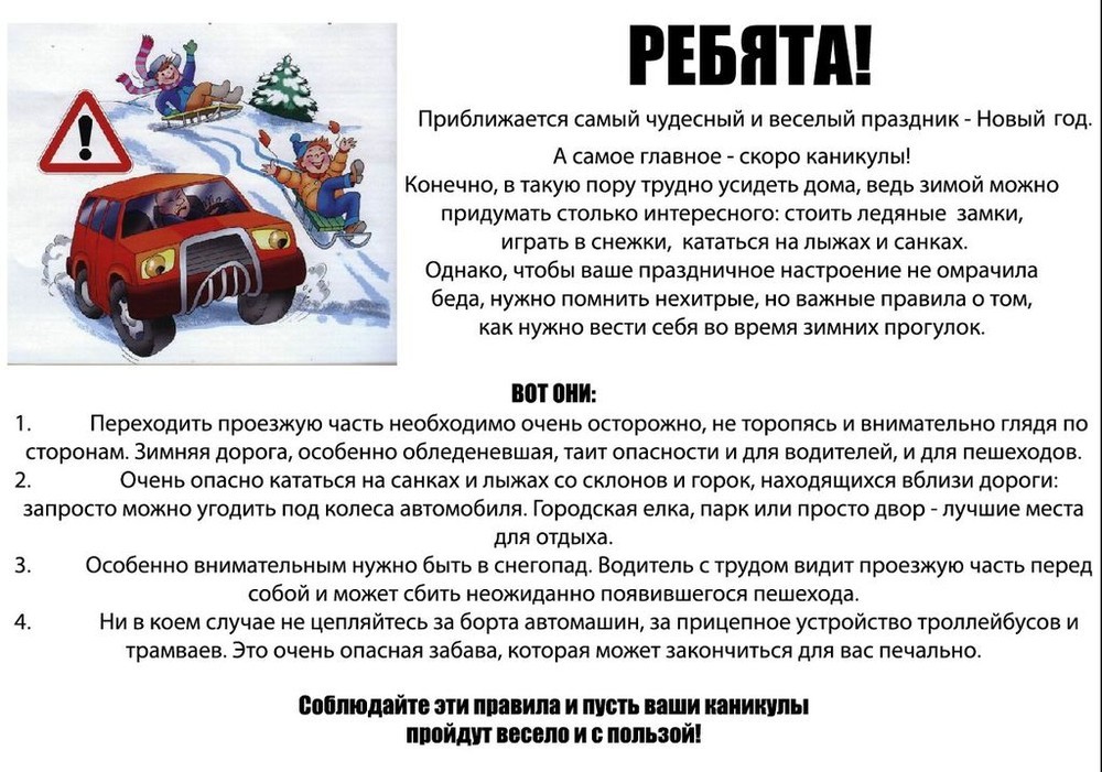 Пожалуйста, сделайте всё, чтобы каникулы Ваших детей прошли благополучно, отдых не был омрачён.