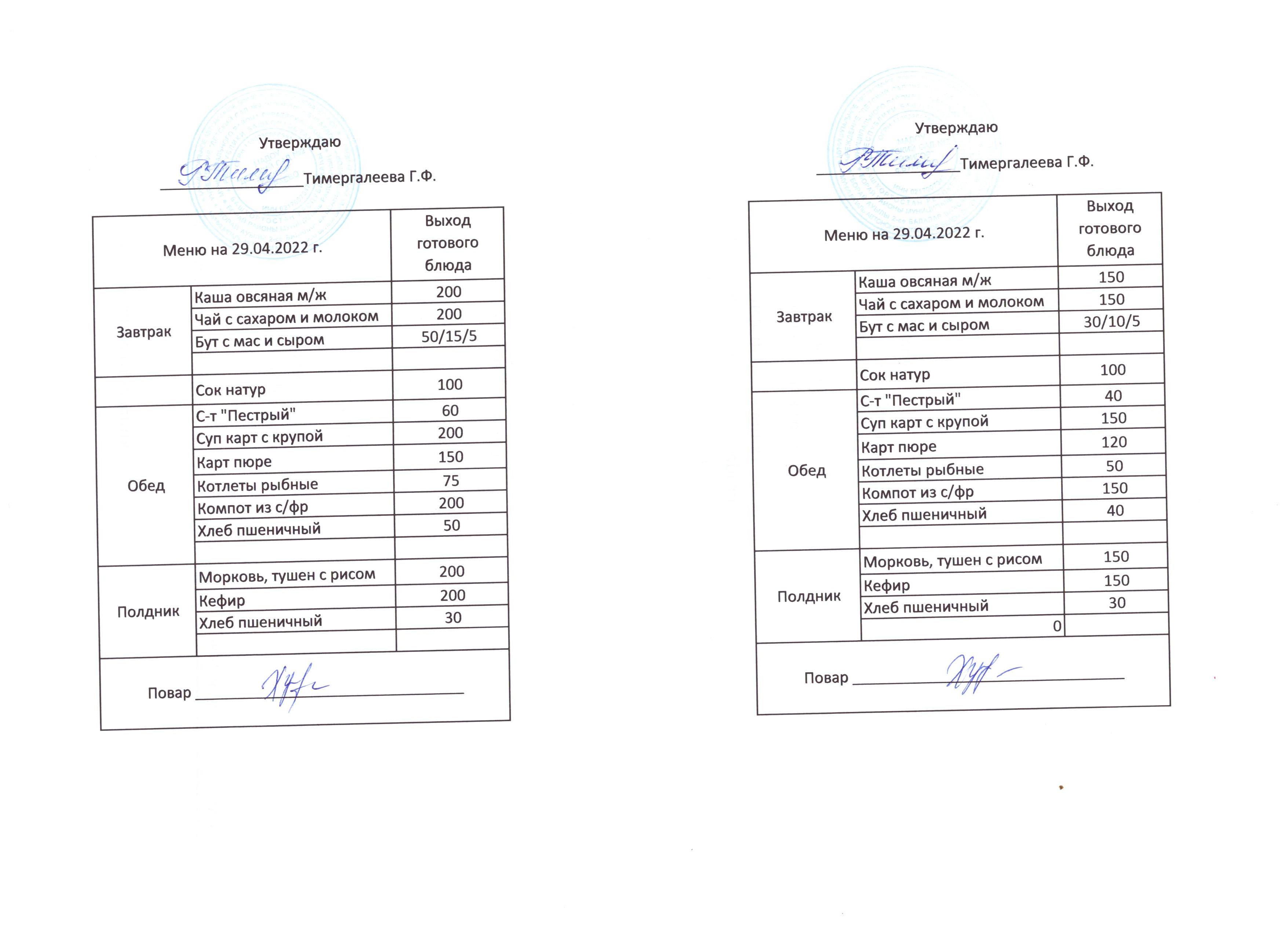 (Меню на 29.04.2022)