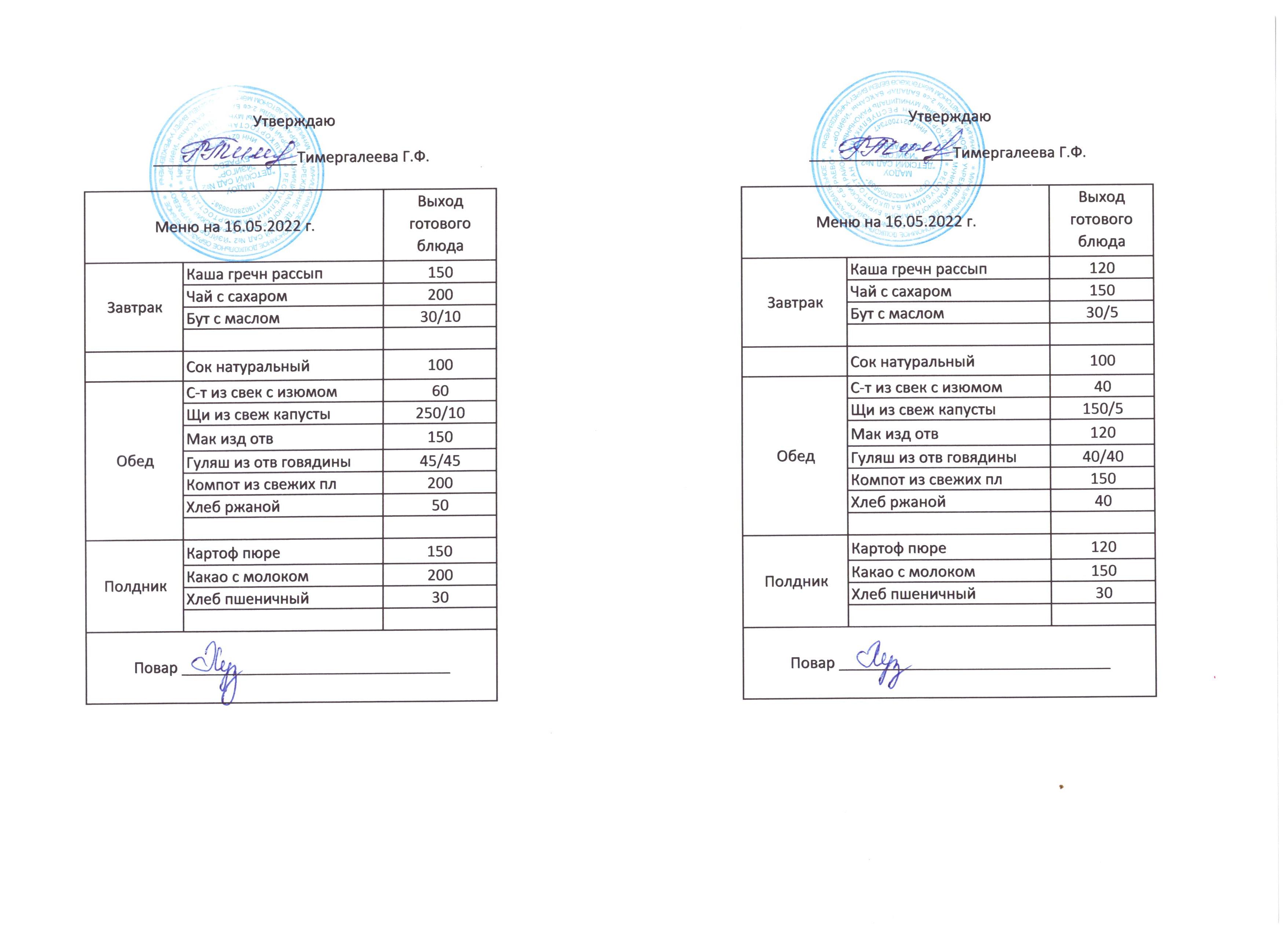 (Меню на 16.05.2022)
