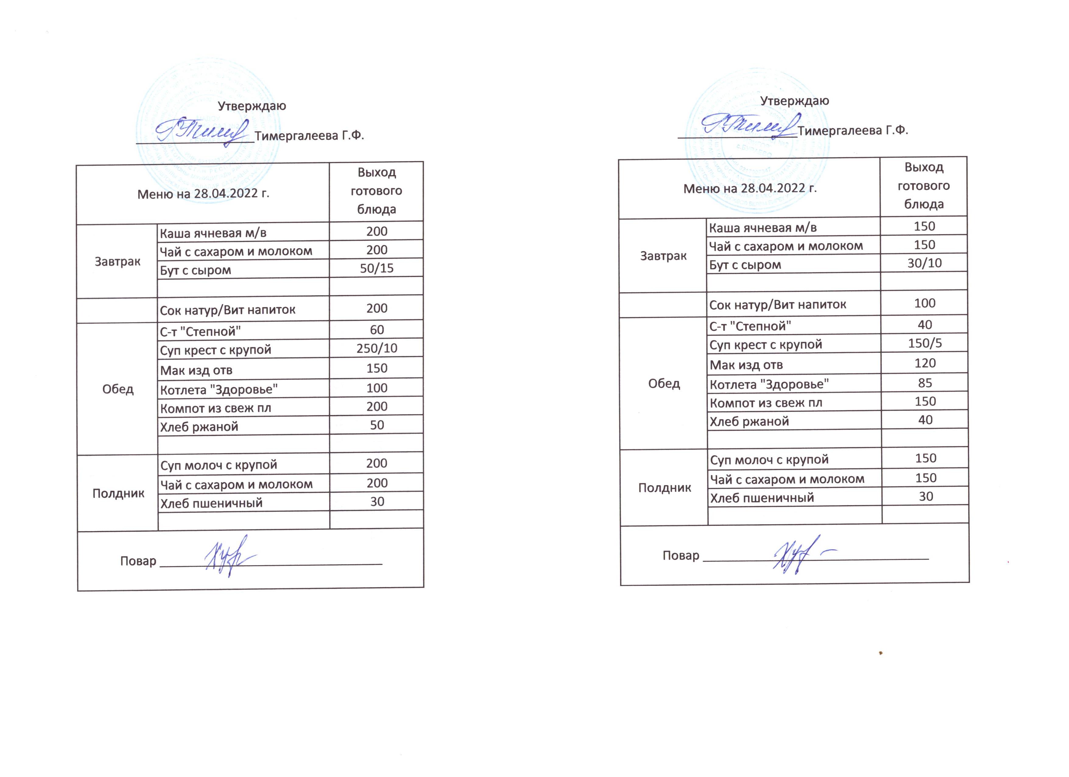 (Меню на 28.04.2022)