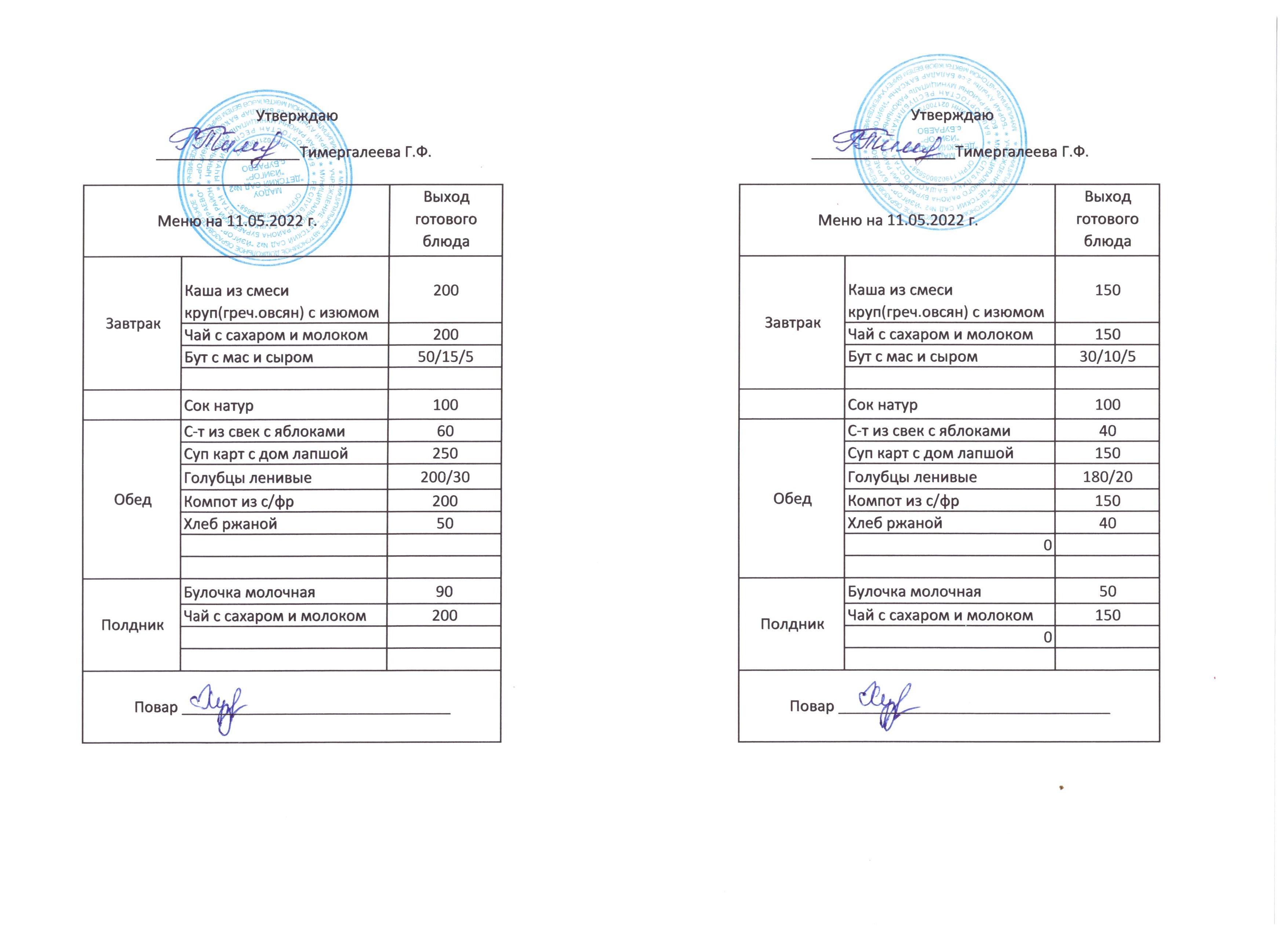 (Меню на 11.05.2022)