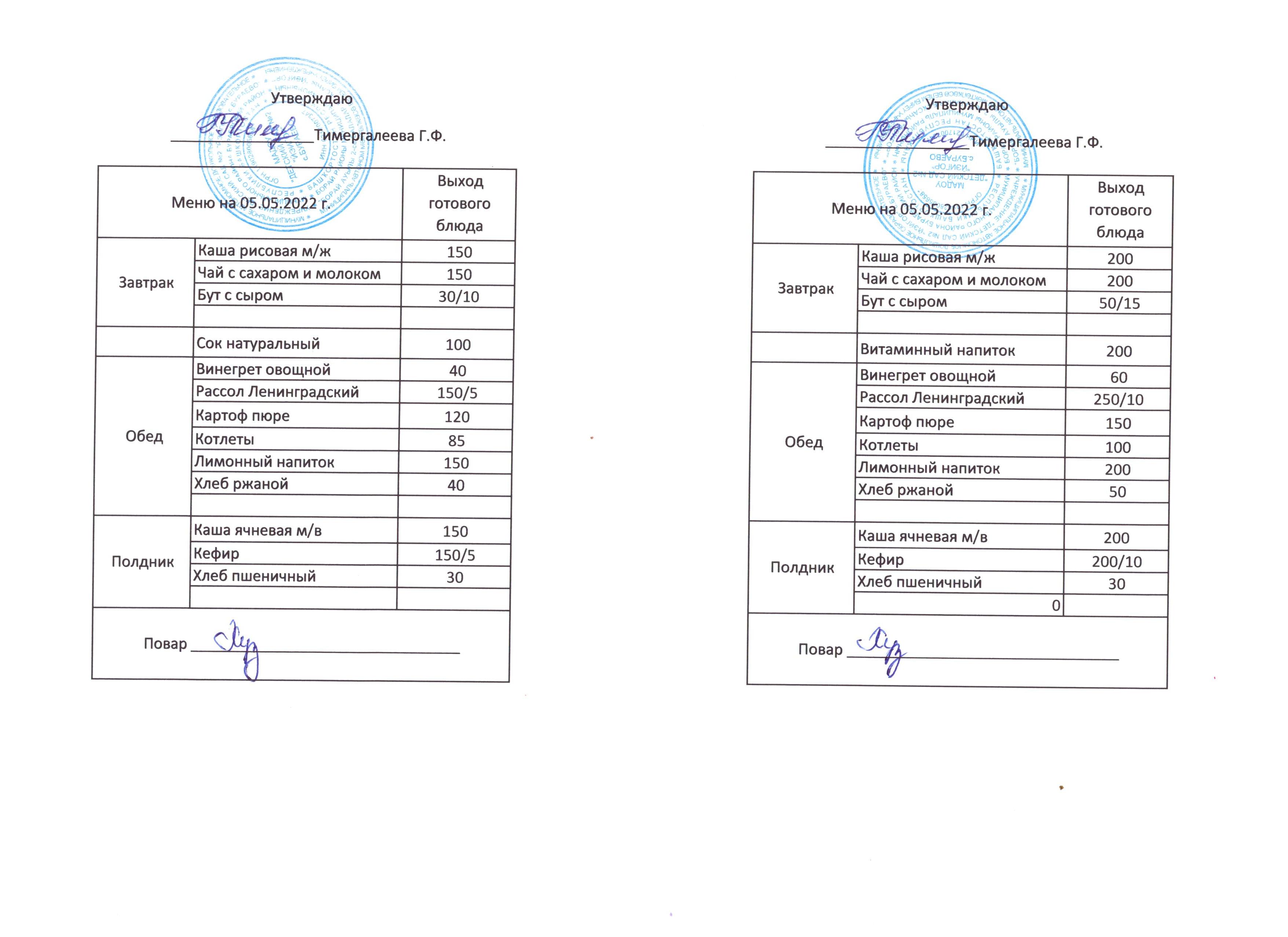 (Меню на 05.05.2022)