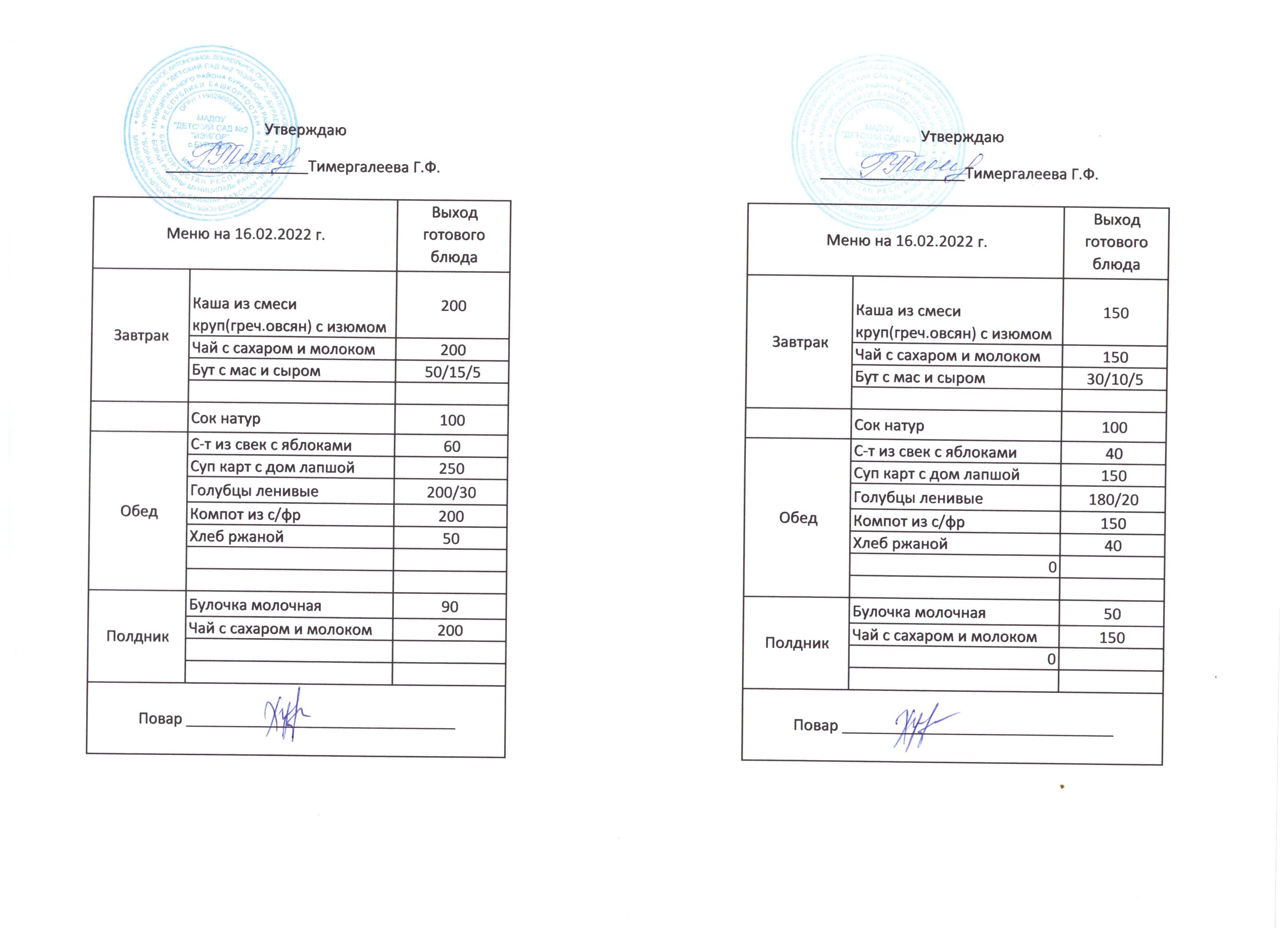(Меню на 16.02.2022 )