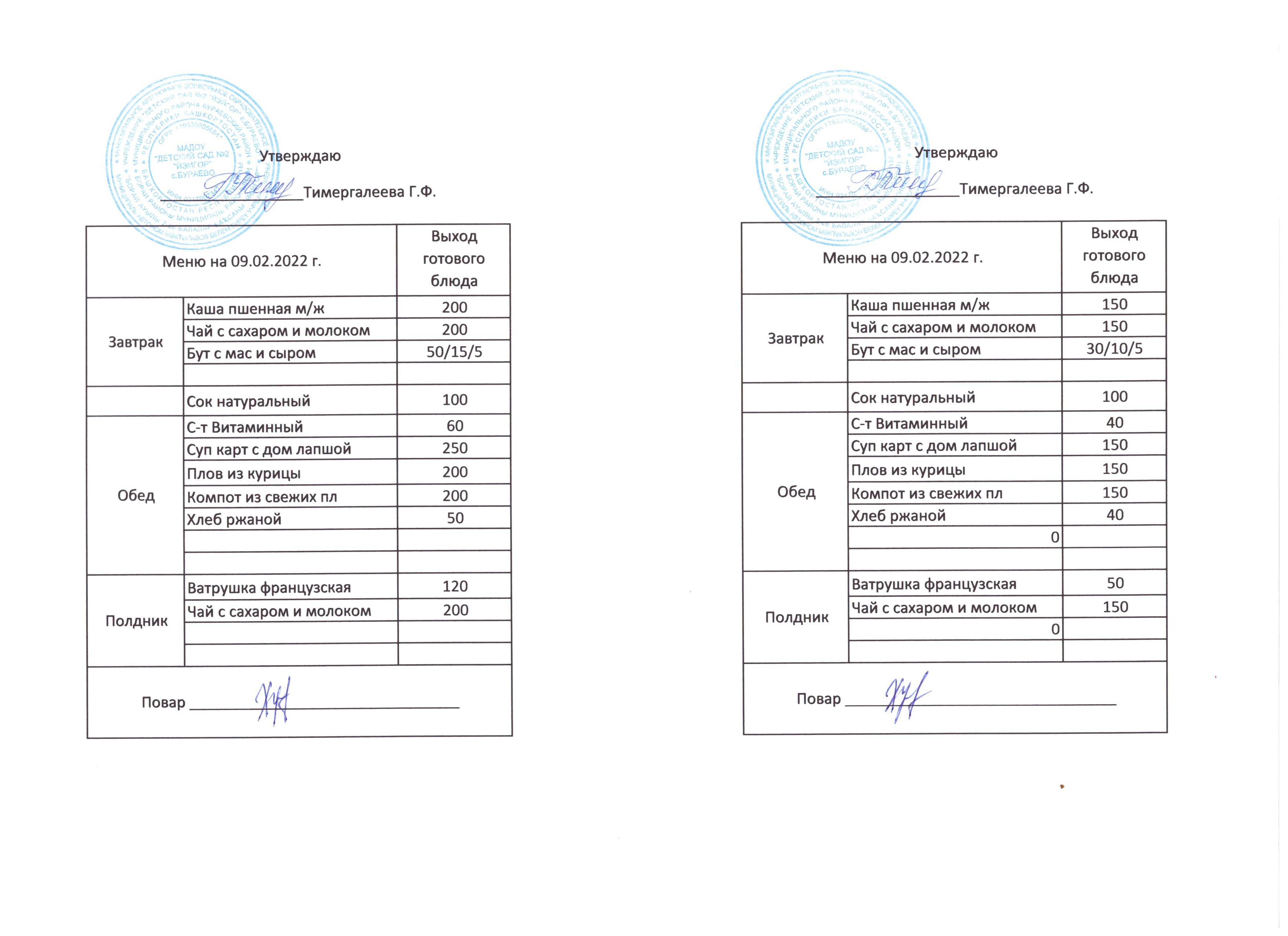 (Меню на 09.02.2022)
