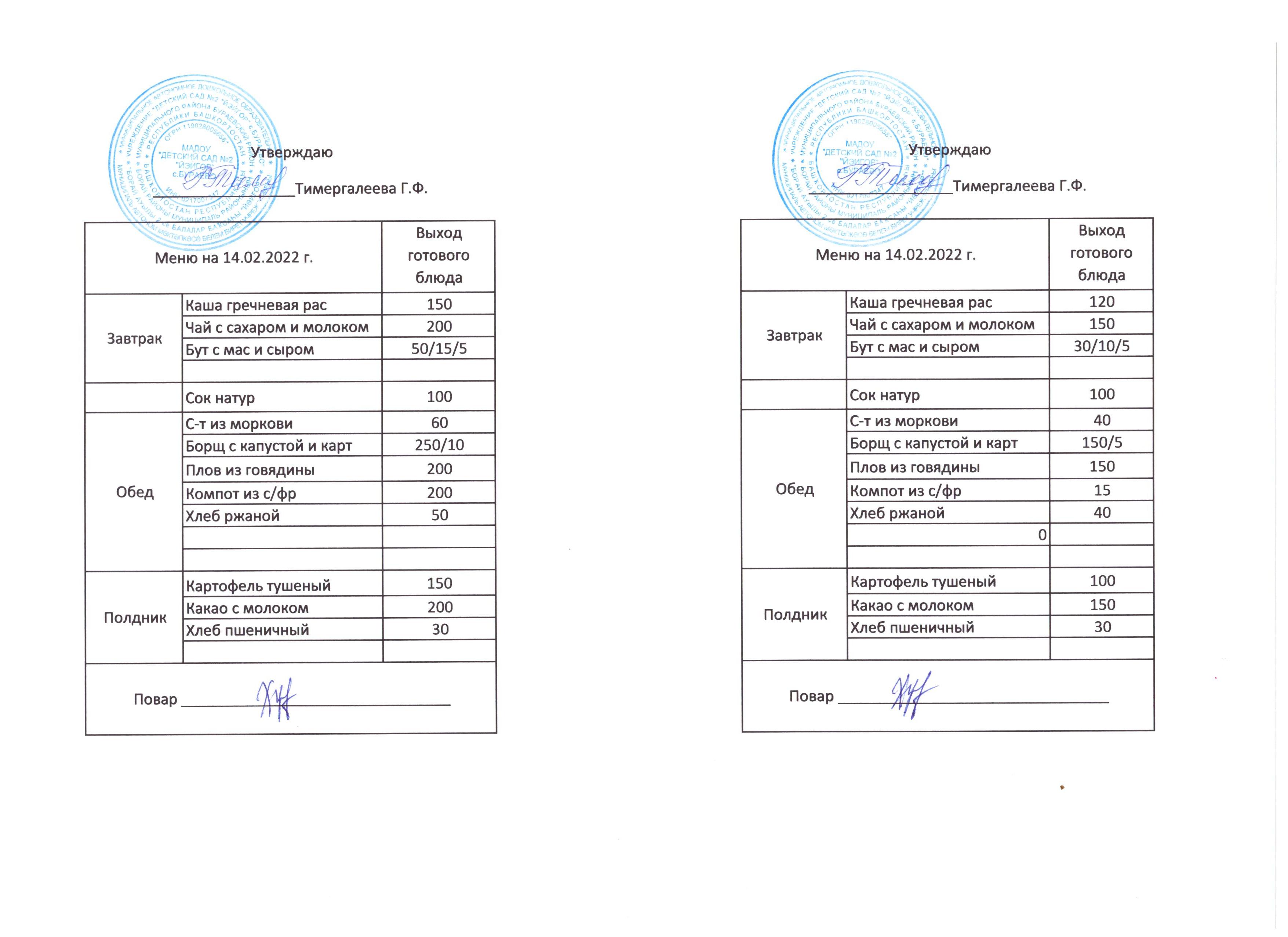 (Меню на 14.02.2022)