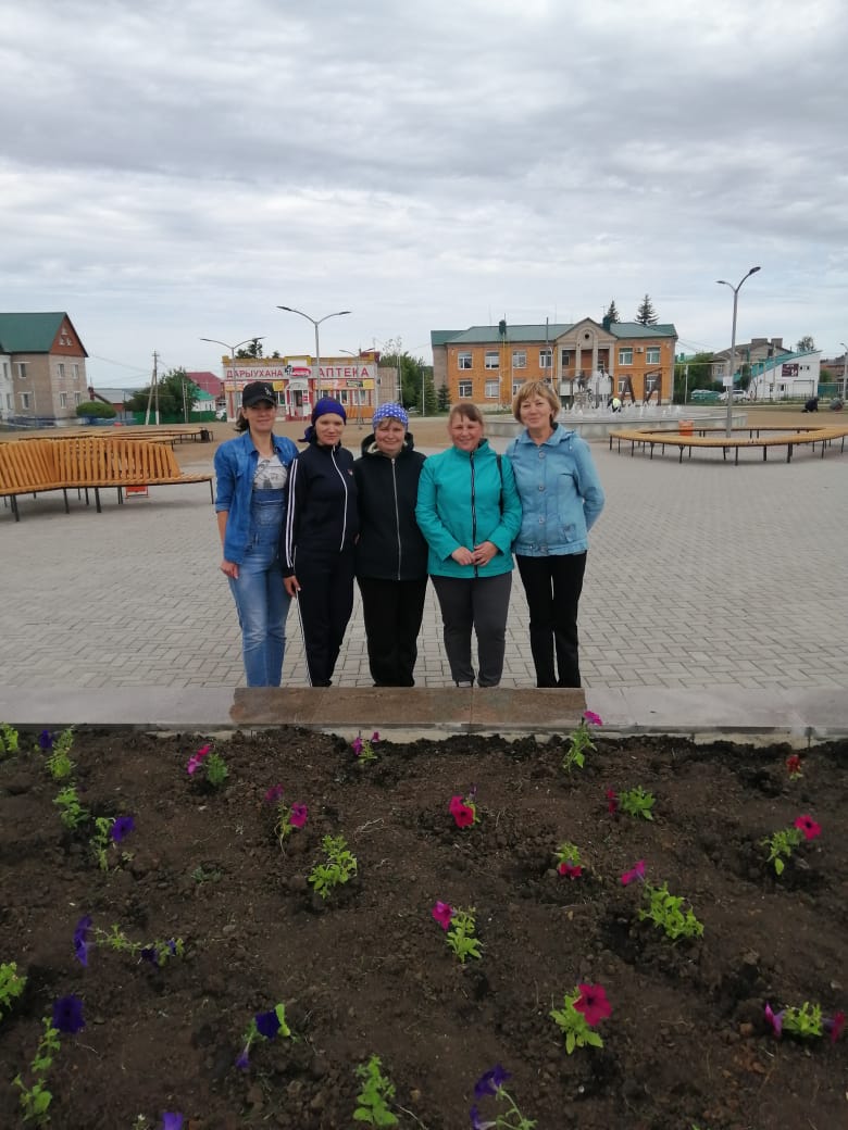 Наш коллектив принял в участие в посадке цветов на центральной площаде с.Бураево.